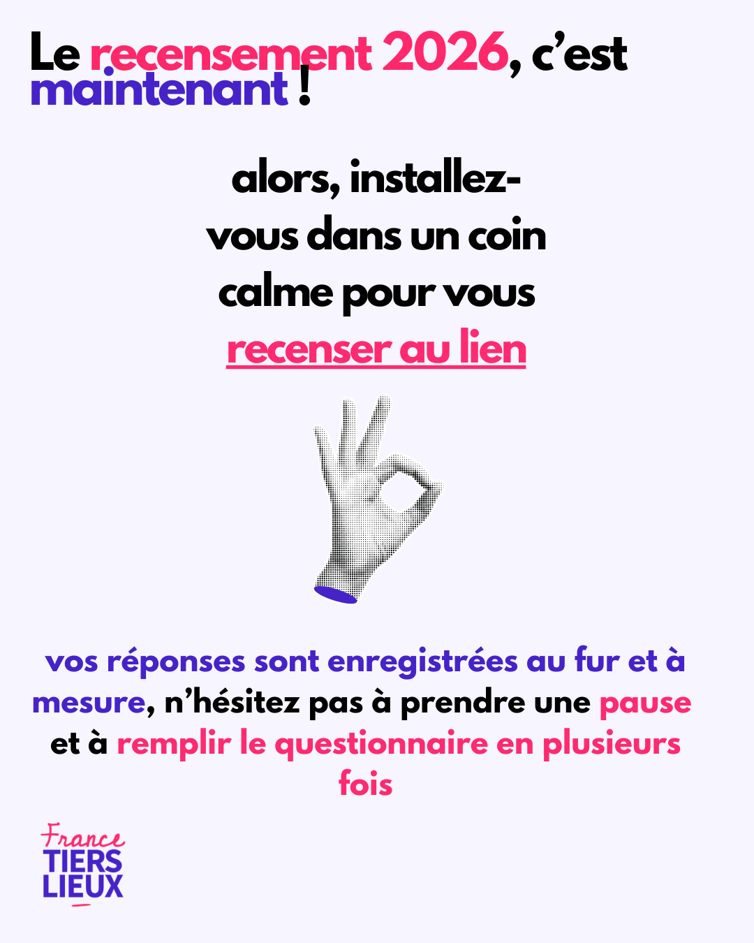 👉 Accéder au questionnaire : https://donnees.tiers-lieux.fr/ et suivez le tutoriel : https://francetierslieux.fr/evenement/recensement-national-des-tiers-lieux-2026/